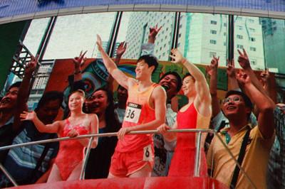 也许隔空祝福再也不足以表达中国民众对中国运动健儿的殷切期望,因此藉冠军罐发布之机,青啤启用先进的虚拟影像技术,将现场活动参与者的影像投放入大屏幕播放的刘翔等明星运动员视频中,合成效果生动逼真,似乎这些远在天边的运动健儿就在大家中间,他们的激情脉搏伸手可触。