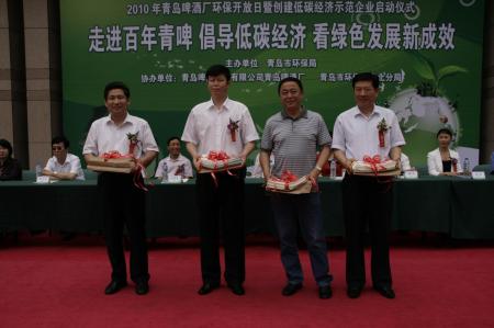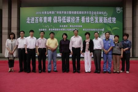 为了响应今年世界环境日“低碳减排. 绿色生活”主题,倡导市民低碳生活,增进企业、政府与社会各界的交流,6月18日上午,由青岛市环保局主办、市北环保分局、青岛啤酒厂承办的“走进百年青啤,倡导发展低碳经济,看治污减排新成效”的青岛市著名企业环保开放日暨青岛啤酒厂创建低碳经济示范企业启动仪式,在市北区登州路56号青岛啤酒厂隆重举行。此次活动,市环保局、市北环保分局、青岛啤酒公司诚邀社会各界人士的广泛参与,通过举办论坛、发起环保倡议等方式让社会各界“零距离”感受到了市北区以及辖区内的青岛啤酒厂在发展低碳经济、节能减排、清洁生产、环境保护等方面的所做的成效和努力。活动也得到了各界的广泛支持,青岛市环保局副局长鞠荣辉、中国农工民主党青岛市委副主委乔俊良、中国农工民主党青岛市委秘书长于青云、市北区人大副主任徐雪兴、市北区政协副主席韩文、青岛啤酒股份有限公司副总裁刘英弟、青岛啤酒厂厂长薛超山、市北区政府机关各部门、特色街管委会、相关街道办事处、企业职工和社区居民代表等100多人参加了活动。