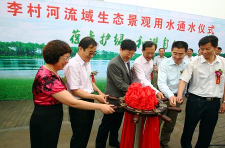 青岛市环保局长宋春康、青啤公司总裁孙明波等人开闸通水