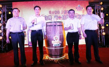 中国酒业协会理事长王延才、山东轻工业协会会长李伟鸣、山东省食品工业公司总经理姜祖模以及青岛啤酒股份有限公司总裁黄克兴、副总裁兼营销总裁王瑞永、制造副总裁董建军、营销副总裁杨华江等嘉宾,与青岛啤酒消费者代表共同出席了青岛啤酒【全麦白啤】新品发布会。青岛啤酒【全麦白啤】的适时推出,不仅填补了白啤品类上的空白,更将有效满足高端细分市场的需求,走在消费时尚潮流的最前端,为消费者带来更多元化的高品质味蕾享受。