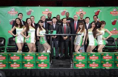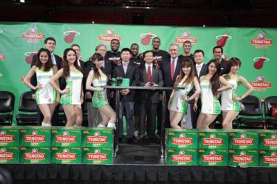 美国当地时间12月20日中午12:30(北京时间12月21日凌晨1:30),青岛啤酒迈阿密热火队战略合作签约仪式在美国举行,迈阿密热火队老板阿里森、总裁莱利,热火三巨头小皇帝詹姆斯、闪电侠韦德、龙王波什以及著名球星巴蒂尔齐聚迈阿密美航球馆,青岛啤酒股份有限公司总裁孙明波出席了本次签约仪式。作为美国职业篮球联赛的夺冠热门球队,此次战略合作,是青岛啤酒继签约奥运会、与NBA合作、签约2012伦敦奥运中国冠军军团之后的又一力作,推动了与全球共享体育的激情与快乐。