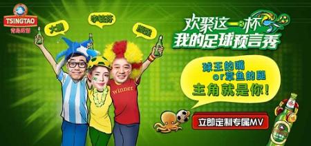 上个周末的里斯本吸引着全世界的目光,皇马在加时赛时连进三球4-1逆转马竞捧起第10座大耳朵杯 ,值得一提的是上一次马竞赢得西甲冠军,皇马赢得欧冠还是48年前的1966年,那一年世界杯冠军属于英格兰,今年巴西世界杯又会是怎样的一场厮杀?其实,各路大神早已发功预测世界杯,5月26日青岛啤酒推出9支互动MV,用一种炫酷的方式邀请球迷定制专属“我的足球预言秀”,有图有真相,人人都可以是章鱼保罗!