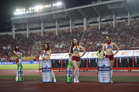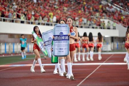 崂山啤酒足球宝贝全面登陆中超赛场,开赛前的中超嘉年华活动中足球宝贝带来精彩表演,开赛后中场休息环节足球宝贝会出现在球场中央为现场观众带来热舞,频频互动、嗨爆全场,形成了体育场一道靓丽的风景。