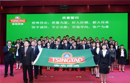 4月10日上午,主题为“质量之魂 存于匠心”的青岛啤酒第39届质量月暨“质量日”主题活动在青岛啤酒二厂举行。青岛啤酒提出 “大质量观”,将建立全员质量管理理念和管理体系。当天,青岛啤酒科研、生产、营销等价值链员工代表以及酿酒师团队在消费者代表的面前发出了铮铮誓言:青啤伟业,质量为基;好人好酒,薪火传承……