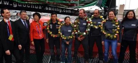 历时60天、完成10000海里“21世纪海上丝绸之路”航行的郭川船长和船员们,率领“中国·青岛”号超级三体大帆船顺利驶入摩纳哥游艇俱乐部。12月21日,在专为“中国·青岛”号超级三体大帆船举行的欢迎仪式上,“和平与体育”组织主席乔伊·布佐为郭川船长和船员们戴上了象征成功的花环,标志着21世纪海上丝绸之路航行圆满收官。