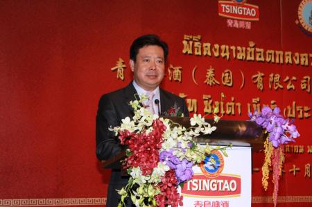 当日,泰王国前副总理威萨努,中国驻泰国特命全权大使管木,山东省委常委、青岛市委书记李群,青岛啤酒公司董事长金志国、副总裁黄克兴等参加了签约仪式。青岛啤酒此次选择泰国建厂,无疑是以进军东南亚市场作为拓展欧洲、乃至大洋洲国际市场的第一站,标志着百年青啤在历经多年的国际化探索之后,厚积薄发国际化再升级,在跨国经营的征程上迈出了坚实一步;同时此举对于提升行业整体竞争力和中国品牌参与国际竞争意义深远。