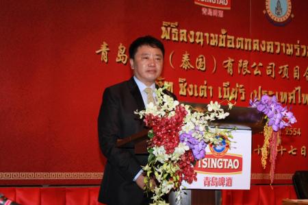 签约仪式上,山东省委常委、青岛市委书记李群表示:青岛啤酒带着它的激情活力,把工厂建到了泰国,也把青岛的热情与开放的啤酒文化带到了泰国。我们有理由相信,青岛啤酒将会受到更多的泰国消费者、东盟各国人民的喜爱和关注,青岛啤酒不仅仅是物质产品,更代表着开放创新的精神文化。所以我们真诚的祝愿青岛啤酒在泰国的工厂,能够成为文明之王,成为文化之王,成为啤酒之王。
